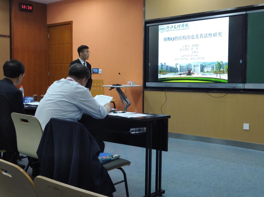 本届年会于2020年10月30日至11月1日在重庆大学举行,我校2019年立项的国家级创新训练项目“辅酶Q10的结构改造及其衍生物的活性研究(项目编号:20191051906)”经湖北省教育厅推荐,入选本届年会的学术论文项目。我校2017级化学工程与工艺专业学生张俊朝作为项目负责人,代表团队在年会现场作了题为“辅酶Q的结构改造及其衍生物的活性研究”的学术报告,与来自清华大学、天津大学、厦门大学、大连理工大学等20所高校的学生同组交流。