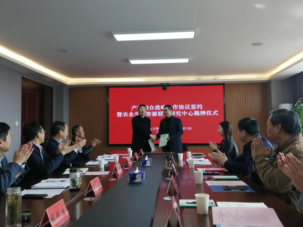 朱青林和孙祥民共同为“农业生态资源联合研究中心”揭牌,食品·化工学院和地质八队互签了战略合作框架协议。签约仪式之前,朱青林一行还参观了湖北省地质局第八地质大队的实验平台和仪器设备。