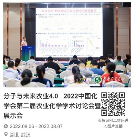 (通讯员 刘向红)2022年8月7日上午,学院张锐博士在“2022分子与未来农业4.0--中国化学会第二届农业化学学术讨论会暨展示会”上,受邀做题为“无过渡金属参与、无溶剂条件下酰胺键绿色合成新方法”的口头报告。