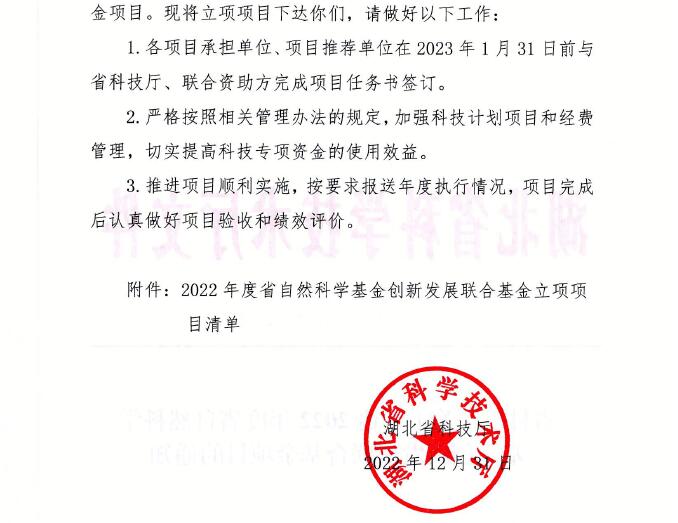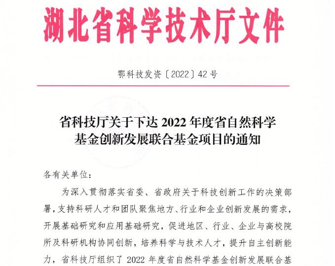 【喜报】学院获批4项湖北省自然科学基金创新发展联合基金项目