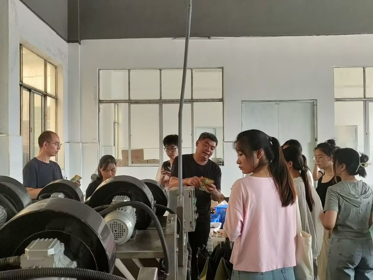 (通讯员 豁银强)2023年7月8日,学院吴进菊、豁银强两位博士带领淀粉质健康食品团队部分学生前往襄阳孔明菜食品科技有限公司开展调研和科技服务。公司总工程师李玉庆对师生一行的到来表示热烈欢迎,他向师生介绍了公司的状况,重点介绍了公司主打的即食大头菜和速食襄阳牛肉面产品,带领师生参观了牛肉面和大头菜生产线,并对学生们的提问进行了耐心地解答。