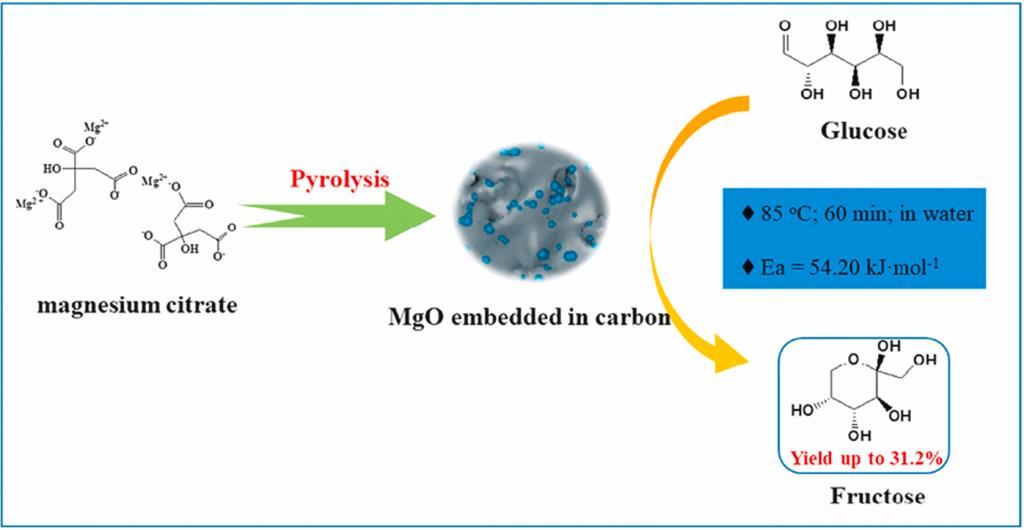 该文以柠檬酸镁为原料,采用简单、高效的一步热解法成功制备了氧化镁镶嵌型多孔碳固体碱催化剂,该催化剂独特的镶嵌结构有利于反应底物与活性中心的充分接触,在生物质衍生的葡萄糖高效异构制果糖反应中显示出优异的催化活性及稳定性。该研究对于解决生物质炼制化学品的关键步骤存在转化效率低、催化剂易失活等难题具有较高的研究及应用意义。(https://doi.org/10.1016/j.jclepro.2023.138950)