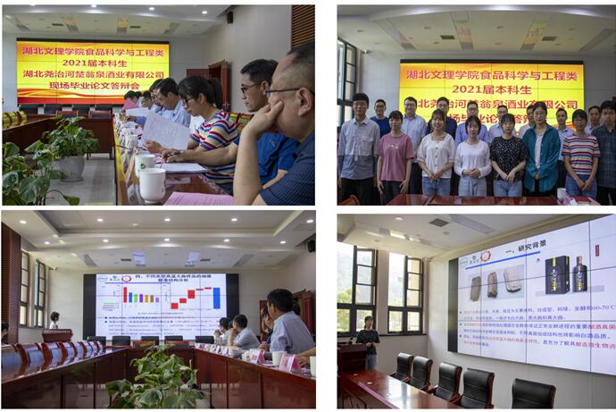 食品科学与工程2017级本科生雷炎、崔梦君、向凡舒和葛东颖及食品质量与安全2017级本科生王强等5 位同学分别报考了石河子大学和河北工程大学的硕士研究生,拟选择的导师均从事白酒或者果酒酿造相关领域的研究,因而上述同学向学院提升申请,希望自己的本科生毕业论文能围绕白酒酿造开展。针对这一情况,学院安排郭壮、张振东和侯强川3位博士作为5位同学的论文校内指导教师,并从湖北尧治河楚翁泉酒业有限公司选聘王文平、田龙新、周加平和刘菊珍为校外指导教师,围绕《基于宏基因组策略尧治河酒业高温大曲细菌多样性研究》、《尧治河酒业不同类型高温大曲真菌类群群落结构解析》、《基于电子鼻、电子舌和GC-MS联用技术酱香型白酒风味品质的评价》、《茅台和尧治河高温大曲细菌群落结构差异及功能预测研究》和《尧治河中高温大曲曲皮和曲心真菌多样性解析》等5个选题开展研究,并在酒业公司完成了现场答辩,实现了毕业论文的真题真做,得到了保康县科学技术和经济信息化局领导的肯定。在硕士研究生复试过程中,上述同学对面试组提出的白酒酿造相关领域的问题回答的游刃有余,最终被成功录取。