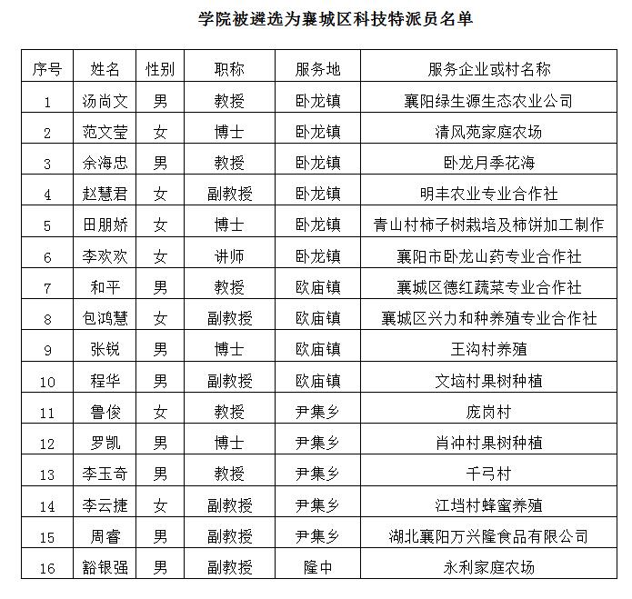 党中央在《中共中央关于制定国民经济和社会发展第十四个五年规划和二三五年远景目标的建议》中,对新发展阶段优先发展农业农村、全面推进乡村振兴作出总体部署,科技特派员制度是推动乡村振兴的重要抓手。为贯彻落实好中央部署,学院不等不靠、积极作为,利用自身学科特点和专业办学优势,主动与襄城区科技局对接,着力解决专任教师“空有技术专长”“剃头匠的挑子一头热”难以跟产业界对接的实际问题,为学院教授、博士牵线搭桥,在襄城区农业产业界找“婆家”、找“合作对象”,共成功推荐16名教师成为襄城区科技特派员,与企业建立了直接联系。