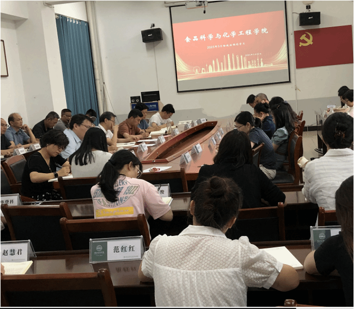 (食化学院 通讯员 窦素琴)根据学校2025年5月份教职工政治学习安排,吃瓜网官网每日于2025年5月22日下午2:10在学院三楼会议室举行全体教职工大会,会议由学院党委书记储杰主持。