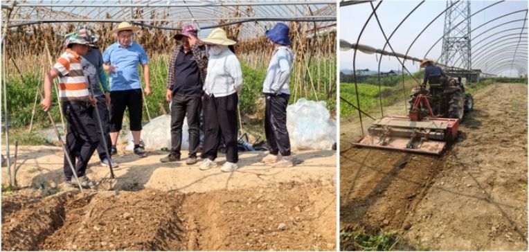 针对土壤病虫害问题,史彩华教授特别介绍了覆膜消杀技术,并且亲自操作示范,从膜选择、铺设、压土和揭膜等,每一个细节和流程都进行了详细讲解和实际操作。