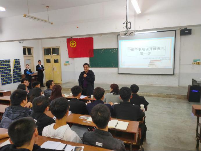 (通讯员 刘双圆)1011日晚,食品科学技术学院·化学工程学院2019年学生干部干事培训开班正式开讲。院党委副书记刘向东为学生干部讲第一课,学工办主任姚继平、院团委书记刘双圆出席开班式。