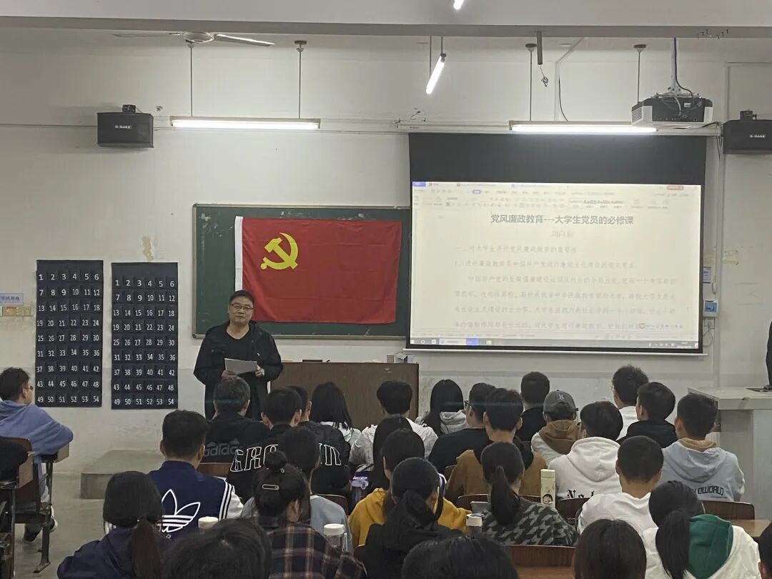 (食品·化工学院 通讯员 毕楷坚)为进一步提升党员思想政治素质,加强校园廉政建设,培育校园廉政文化建设,树立大学生正确的权利意识,提高学生遵守党纪国法的自觉意识,在思想上筑起党风廉政建设防线和思想道德防线,食品·化工学院学生党支部于10月19日晚上6点30分在北区四栋教学楼109教室开展党支部十月学习大会,食品·化工学院党委副书记刘向东主讲,学生党支部书记包静、学生辅导员向琼、周武毅以及学生党支部全体成员参加会议。