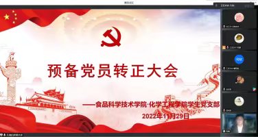 (食品·化工学院 通讯员 尚宁昕)11月29日晚上6:30,食品·化工学院学生党支部通过腾讯视频会议召开预备党员转正大会,学院党委副书记刘向东、学工办主任包静以及全体学生党员、预备党员参加会议。
