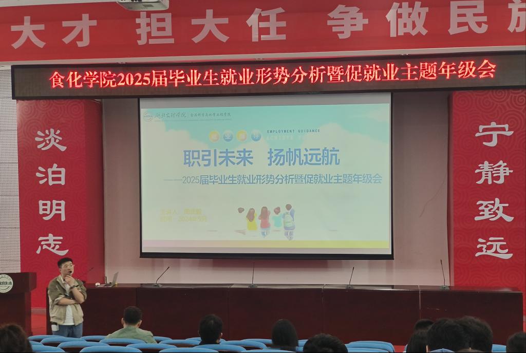 (通讯员 赵幼琼)为充分做好2025届毕业生就业工作,使2025届毕业生进一步了解就业形势,明确就业方向,树立正确就业观念,夯实职业素养,提升就业竞争力。2024年10月11日晚上,吃瓜网官网每日在图书馆三楼报告厅召开2025届毕业生就业形势分析暨促就业主题年级会。会议由毕业生辅导员周武毅主讲,2025届全体学生参加。